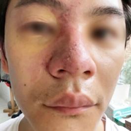 The following day, the man experienced pain and noticed a change in skin colour in the treatment area. This progressed and the man showed early signs of blocked blood vessels, a rare but severe complication of non-surgical rhinoplasty. The clinic injected two doses of hyaluronidase in a bid to break down the dermal filler before seeking a second opinion from Mr Yue as to how to manage the complication.